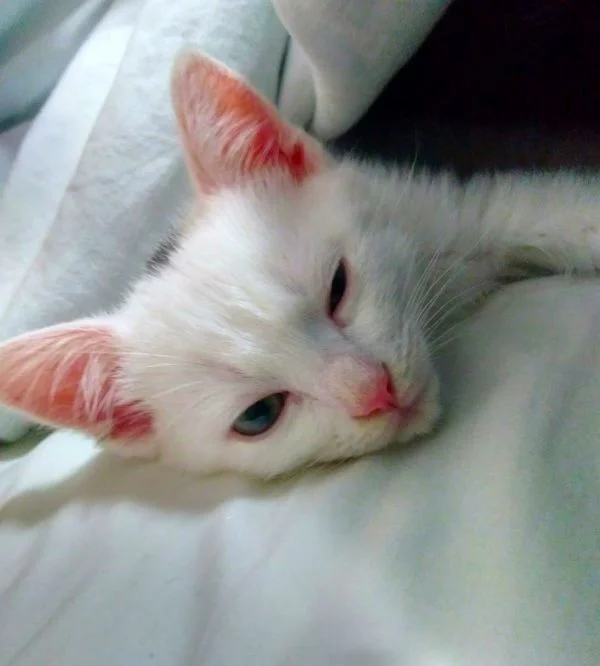 O Lucky é um gatinho SRD albino, com heterocromia (um olho azul e outro amarelo), personalidade marcante e um jeitinho único de encantar todo mundo. Além disso, ele é extremamente curioso, observador e, claro, muito arteiro.
